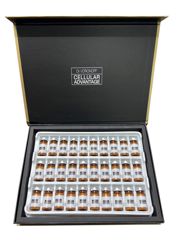 Dr. Voronoff Cellular Advantage is a scientifically developed blend of cellular components, amino acids and co-factors that play a central role in the cellular development of humans. Our treatment represents decades of research and trials done by doctors and biologists who have been using this approach to treat their patients (Voronoff, Bogomotetz, Fischer, Filatow, Niehans, Stein, Denis, etc.).
